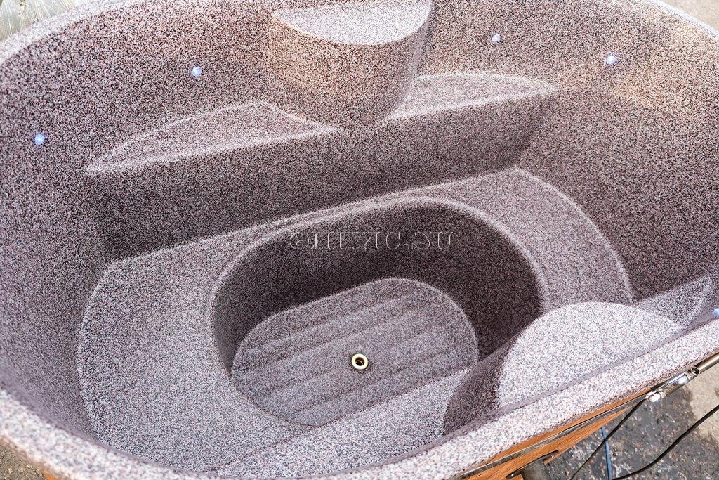8. Удобная эргономика внутренней конфигурации чаши с лавочкой по кругу или с дополнительным шезлонгом внутри. Доступно 15 вариантов цветовых решений фасадов и внутренних чаш купелей.