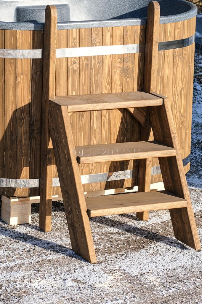 Лесенка для купели состоит из трех полноценных ступеней глубиной 250 -300 мм. + поручни.